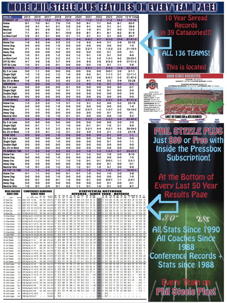 If you subscribe to my Inside the Pressbox newsletter you get Phil Steele Plus for the season for FREE as well. Click here to subscribe. CLICK HERE