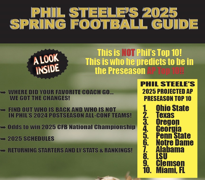 Here is the 2025 Phil Steele’s Spring Guide. Jam packed with information about the 2025 College Football season.